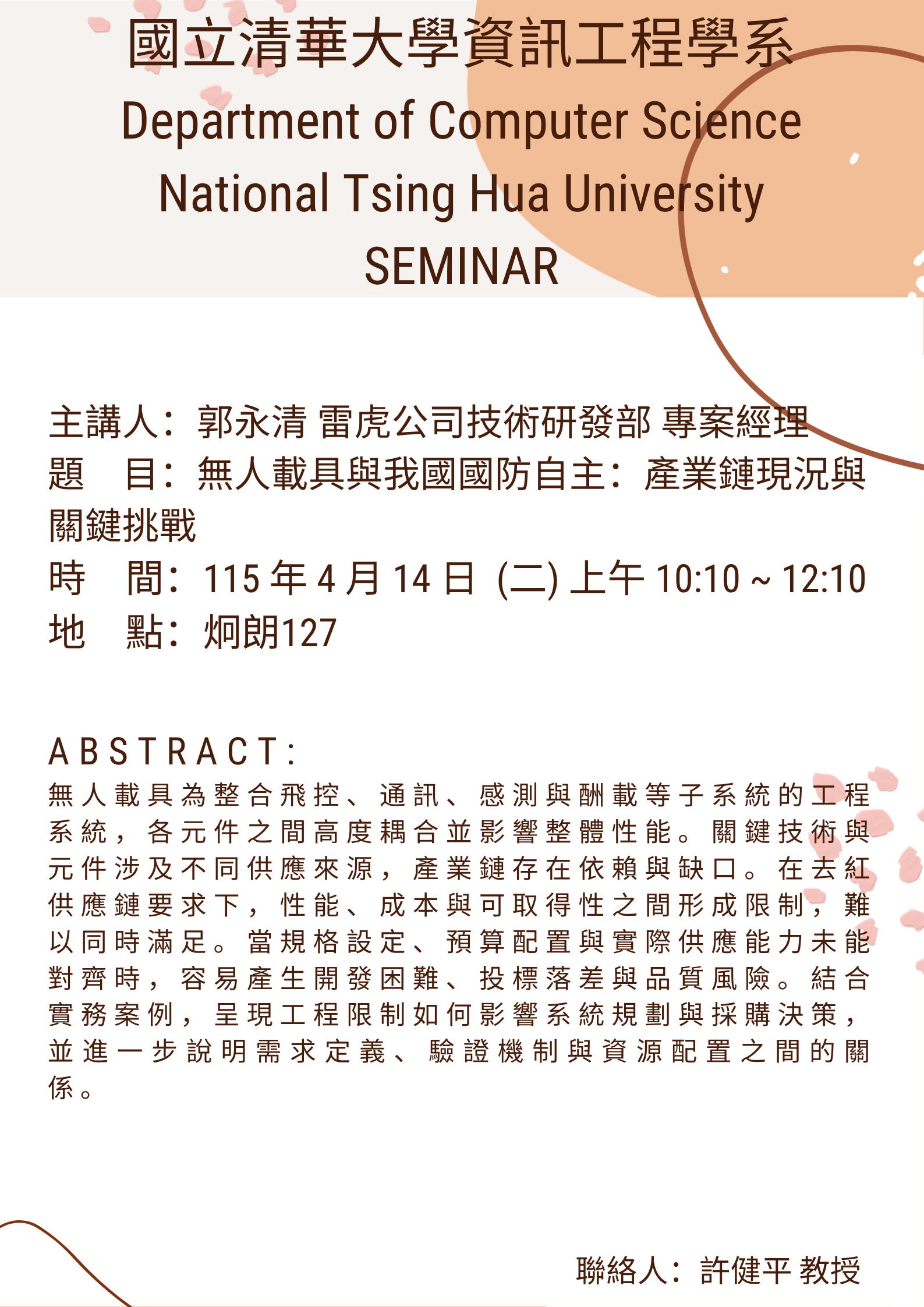 4/14 (二) 無人載具與我國國防自主:產業鏈現況與關鍵挑戰 主講人:郭永清 專案經理